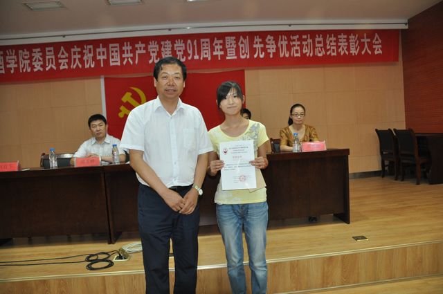 为隆重庆祝中国共产党建党91周年,做好创先争优活动总结工作,学院于6月26日下午在北校区绣山活动中心南报告厅召开纪念中国共产党建党91周年暨创先争优总结表彰大会,学院党委委员、学院正式党员和预备党员168人参加了大会,会议由学院党委副书记刘育生主持。 会议在庄严的国歌声中拉开序幕。首先,大会进行了预备党员入党宣誓、正式党员重温誓词活动。全体预备党员在党务秘书钱殷的带领下,举起右手庄严进行了入党宣誓。 党委副书记刘育生代表学院党委宣读了对先进党支部、优秀共产党员进行表彰的决定。党委书记宋西德为先进党支部和优秀党员颁发了证书及奖金 预备党员代表宋文彩同志、学生党员代表高金珊同志、先进党支部代表刘旭同志先后在大会上发言。 党委书记宋西德教授代表学院党委发表总结讲话。他首先代表学院党委向受表彰的先进党支部、优秀共产党员和新发展的预备党员表示祝贺。在讲话中,他回顾了中国共产党91年的光辉历程,特别是改革开放30多年来所取得的举世瞩目的辉煌成就。宋书记总结了学院开展创先争优活动两年来进行的主要工作和取得的各项成绩,阐述了创建世界一流香蕉视频