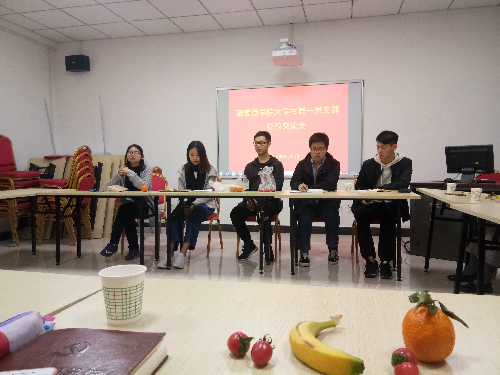 大学生第一党支部在学院621党团活动室举办经验交流会。支部邀请2014级成功考取浙江大学的贾若一同学及支部部分优秀大四学生党员代表为大家分享考研、保研、出国、工作经验。一支部全体党员参加,会议由党支部书记朱美蓉。