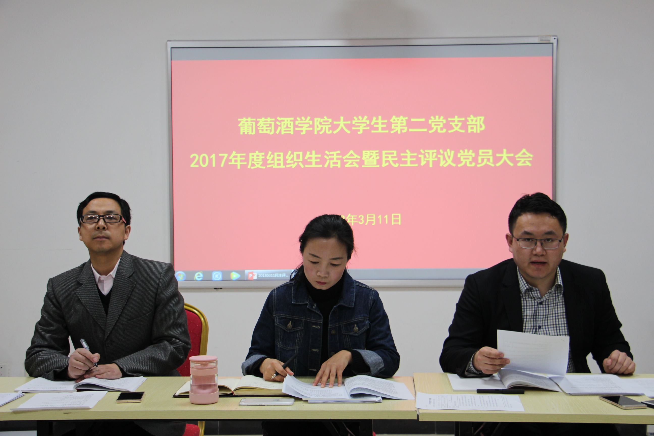 大学生第二党支部在学院党团活动室召开了2017年度组织生活会暨民主评议党员大会。本次大会由支部书记赵星宇主持,二支部全体党员参与,学院党委副书记邓亚丽,党委委员陶永胜全程参会并点评,进行监督和指导。