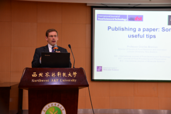 Harrison教授一行还在北绣山活动中心南报告厅为我院师生带来了精彩的报告。Roland Harrison教授介绍了新西兰林肯大学和新西兰葡萄酒产业的发展历史与现状。Tian Bin博士介绍了林肯大学葡萄栽培与酿造专业以及葡萄栽培与酿造研究中心的基本情况,它们的研究内容涵盖了从土地到酒杯(from soil to glass),与我院李华教授提出的“从土地到餐桌”有着同样的涵义。Tian Bin博士还分享了他在病原相关蛋白(pathogenesis-related (PR) proteins)方面的研究进展,与同学进行了充分的交流。Charles Brennan教授作为《international journal of food science & technology》杂志的主编,介绍了在科技文章写作和投稿方面的经验,强调了文章的内容要有科学性和创新性,同时也必须有良好的英语写作能力,才能将实验及研究结果完美呈现出来。同时还强调了抄袭和一稿多投都属于学术不端行为,对作者本人及单位都有极其恶劣的影响,强调科学研究一定要真诚和诚实。此次报告是国际同行间的一次学术交流,也是一次学术道德教育。