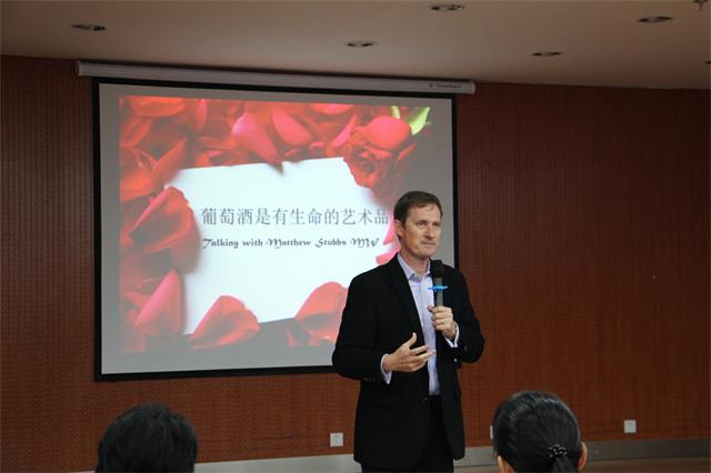 讲座在大家的热切期盼中拉开帷幕。Matthew Stubbs MW首先从他与葡萄酒的渊源讲起,告诉同学们他是如何从一个对葡萄酒了解甚微的人变成“Master of Wine”;告诉同学们他是如何从一个葡萄酒销售人员成长为现在拥有自己的公司的“葡酒人”。正如他自己所说,机会越多,成功的几率越高,而机会来自于实力,而实力来自于努力和付出。来自大师的解读让同学们对自己的未来有了更为笃定的信念。