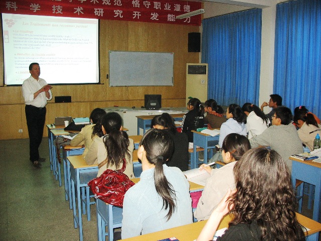 香蕉视频 4月23日下午2时,参加我院第六届国际葡萄与葡萄酒学术研讨会的OIV科技部官员Jean-Claude RUF在我院四层学术报告厅为我院全体研究生做了专题报告,详细介绍了OIV组织的有关情况和世界不同国家、地区葡萄酒的生产现状,使同学们对OIV组织有了具体的了解,同时开阔了视野,增长了见识,相信对将来从事葡萄与葡萄酒行业的工作有极大的帮助。