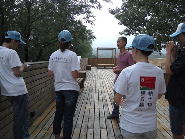 在秦义老师的帮助下,我们联系到了在玉川酒庄工作的我院05级毕业生程阳学长。学长为我们耐心规划了路线。19日早晨,天气晴朗,远山隐于薄雾之后,美不胜收。我们在早餐之后便向玉川酒庄出发。程阳学长为我们进行了简单的介绍后,我们开启了今天的酒庄之行。