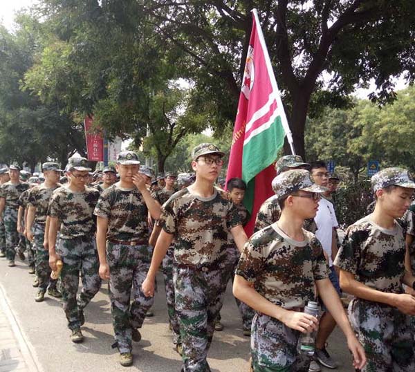 院旗的同学昂首阔步走在队伍最前列,身着军装的同学们朝气蓬勃、步伐一致紧随其后,一刻不敢松懈。奔跑向前的步调,充分展现了同学们积极向上的热情;教官们一声声“跟上”加快了同学们前行的节奏,一句句“加油”鼓舞着同学们的昂扬的斗志。