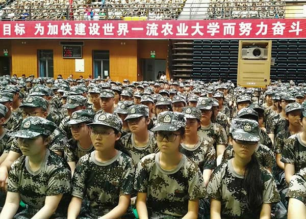 2016级新生在教官的组织下于运动场集合完毕,步行前往南校体育馆参加2016级本科生开学典礼暨军训动员大会。