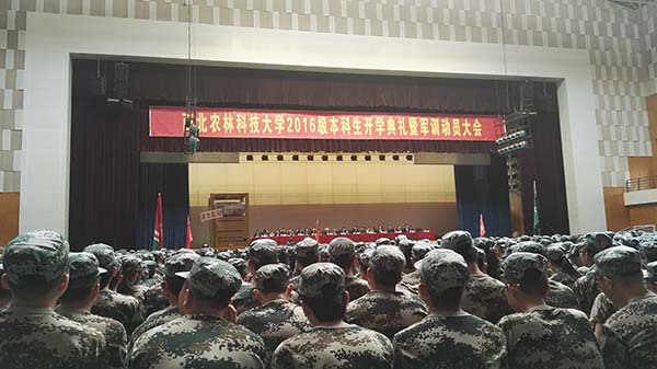 军训动员大会上,每位同学都认真地听着解放军边防学院刘法语对当前的国防形势、东海问题、南海问题的讲解。他表示,当前的形势无一不要求我国的综合国力快速提升,要求新生力量的奋勇拼搏。