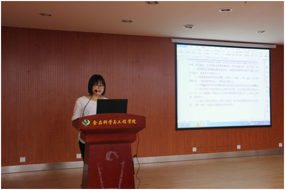 会议开始,主持人陶妍冰对主讲人毛培文做了简要介绍。毛培文学姐不仅在今年成功申请了国家级科创项目,并且一直以来负责学院的科创工作,对科创工作有独到的认识和见解。宣讲会上,毛培文首先为大家介绍了科创工作在我们大学学习生活中的重要性,讲解了学校、学院以及老师们对科创活动的政策支持与鼓励。她认为浓厚的兴趣,独特的创新意识,谦虚严谨的工作态度,坚持不懈的精神和良好的团队意识是做好科创项目的基础与关键。她以优秀的学长学姐为例,在科创课题申请的流程,在科创的过程遇到问题应该如何解决,最终如何取得一个好的科创结果等方面为大家一一说明。