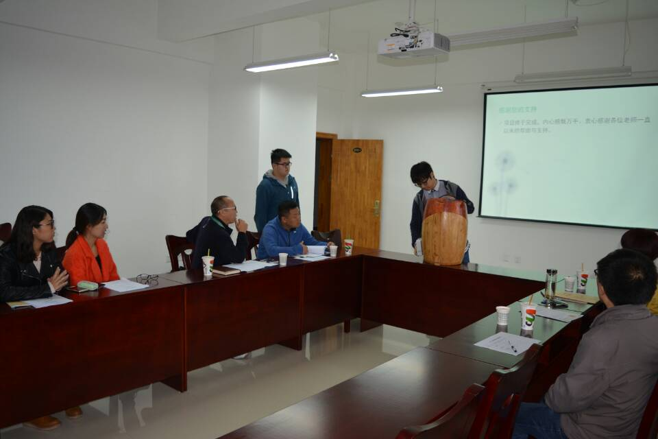 最先答辩的是余鸿飞项目组,所申请的科创课题是“家用小型葡萄酒发酵罐的研制”。主讲人从项目的设计灵感、设计理念以及实验过程中遇到困难及其解决方法都做了详细的介绍。通过他的讲解,大家看到了该项目从确立之初,经过一步步的成长,到最后成熟的过程中的艰辛。各位老师就项目经费及成本,申请专利情况及产品的实用性等进行了深入了解,并就进一步改进并推广研究成果给予了宝贵的意见。郭歌项目组的课题是“利用白地霉酿造降醇葡萄酒的研究”,他们利用实验,选择出对不同酿酒葡萄最适宜的菌种,通过为期九个月的研究,从大量的菌种中筛选出最适宜酿造葡萄酒的菌种,并一一做了比较,将实验结果通过数据,较为详实具体地介绍给各位评委。他们的实验成果得到了评委的一致肯定,但由于未将数据进行分析说明,在短短的答辩时间内未能清晰明了地阐述项目流程,并在一定程度上缺乏对现实因素的考虑,所以还有需要改进的地方。最后答辩的是路玲项目组,课题是“家酿红葡萄酒的工艺规范及质量稳定性研究”。他们为评委老师详细地介绍了实验过程。该项目组选取了众多地区和不同品种的自酿葡萄酒,对它们的理化性质、工艺方法以及酒中的营养成分进行了全面分析。同时还邀请研究生同学对各种自酿葡萄酒进行感官分析研究。从她的介绍中我们能够感受到严谨的科研态度及脚踏实地的实干精神,获得了专家组的一致好评。