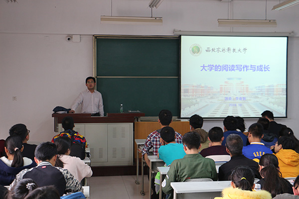 特邀校团委副书记李春祖老师就关于公文写作“大学的阅读写作与成长”这课题作做了精彩的学习报告。我院团工委书记赵星宇老师,辅导员李雅男老师出席报告会,16级新生参加本次报告会。