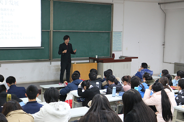 会议伊始,窦老师分析了当代大学生普遍缺少心理健康教育的现象。窦老师结合自己的经历,用诙谐幽默的语言潜移默化地将个人的经验与建议传递给同学们。随后,窦老师将此次心理健康教育报告会简单分为生活、学习、发展以及恋爱四个模块。关于生活,他反复强调,“要注意人际关系,周围人是你一辈子的财富”“人生最重要的环节就是思考,遇事先思考”“千万千万杜绝网络成瘾” 。就学习来说,同学们也得到了“一定要重视英语的学习” “要树立正确的学习观念,不要给自己太大压力”等良好建议。同时,窦老师分外重视沟通与交流、应对压力、控制情绪等能力的培养,并建议同学们重视悦纳、独立、理性与善良这四大人格的完善。不仅如此,窦老师还告诫同学们,关于以后的发展,一定要结合自身特点与客观因素,选择最合理的。而对于恋爱这一敏感话题,窦老师表示,一定要克服自卑,避免从众心理,增强心理承受能力,坦然面对。