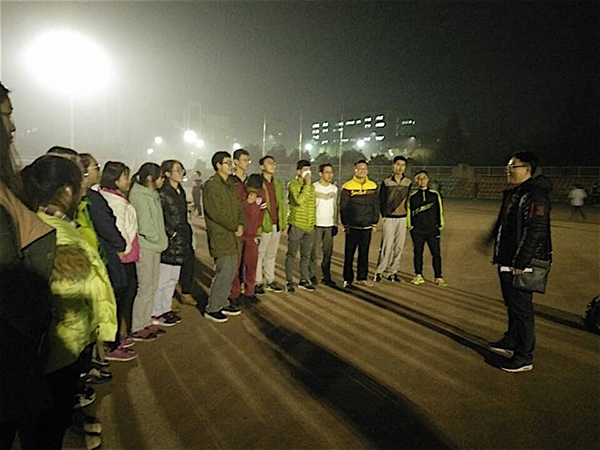 学生积极准备冬季越野赛,12月13日下午六点,我院团工委书记赵星宇老师来田径场看望慰问备战冬季越野赛的同学,给同学们加油鼓劲。