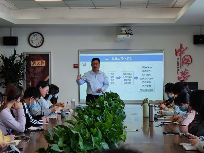 于4月21日在学院党团活动室举行求职面试指导活动,邀请学校职业规划与就业指导教研室兼职教师周海渊为2022届求职毕业生进行面试培训与实践指导。