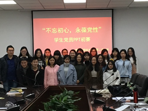 大学生第二党支部在学院615会议室举行了“不忘初心·永葆党性”学生党员PPT大赛初赛。
