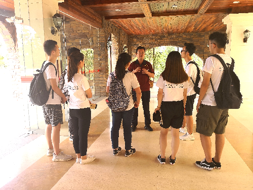 赴乌海酒庄调研服务队全体成员来到了金沙沙恩酒庄。沙恩酒庄坚持葡萄种植无污染、无病虫害、不用化学肥料和农药;坚持“原料基地化,基地品种话,品种区域化”等原则;同时,金沙酒业集团加紧沙恩国际庄园的旅游开发,庄园景区按照国家5A级旅游景区标准建设,是集食、住、游、购、娱一体化的游玩的特色旅游景区并已成为国家4A级旅游景区。