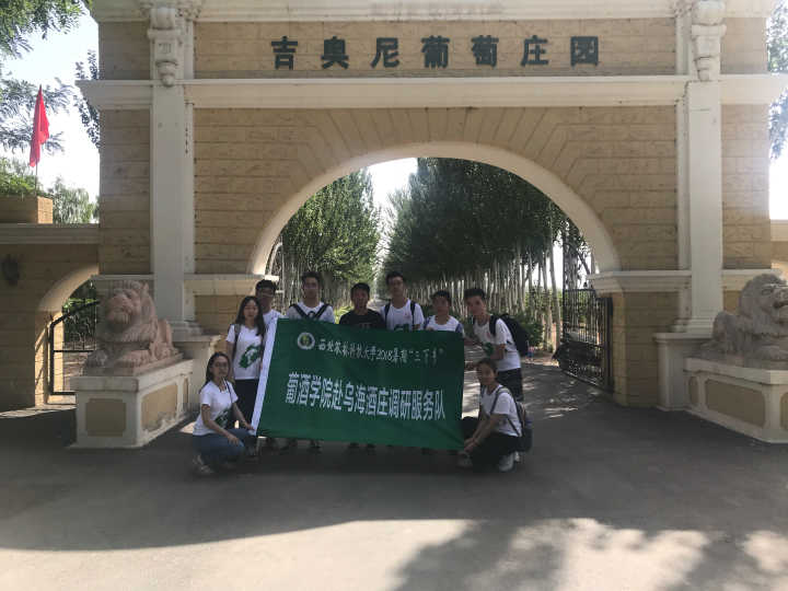 赴乌海酒庄调研服务队全体成员来到了吉奥尼酒庄。吉奥尼酒庄结合乌海文化,开发出了一系列具有乌海地域特色的文化产品,是乌海首个小而专,小而精,小而美的乌海原产地生态葡萄酒酒庄。