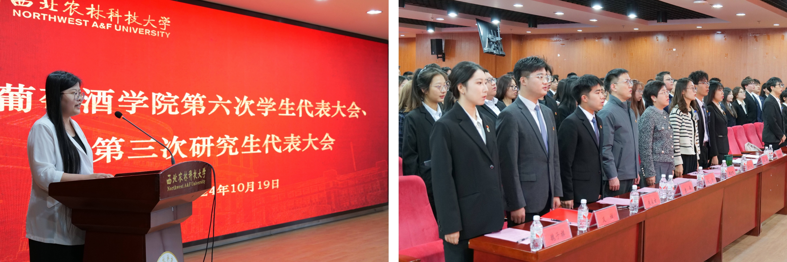 第六次学生代表大会、第三次研究生代表大会在食品学院六楼报告厅顺利召开。学院党委副书记张洁、全体专职辅导员、校学生会、研究生会代表和兄弟学院学生会代表等受邀出席,学院全体团学干部及136名学生代表、44名研究生代表参加大会,会议由学院团委书记王雅楠主持。