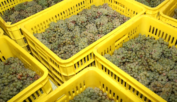 采运回来的学校自主选育的爱格丽白色葡萄原料-要求优质、成熟、卫生