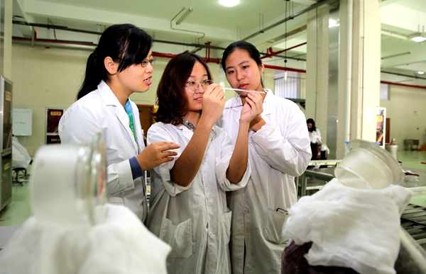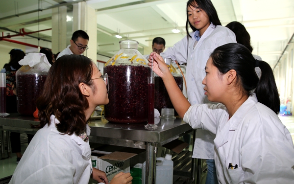葡萄美酒是用心酿造出来的。陶永胜教授带这门实验课已经14年了,他说,这门课虽然是选修课,但每年都爆满,“学生很喜欢做酒的实际体验,喜欢葡萄汁到葡萄酒整个过程的变化,喜欢问为什么,生怕那个步骤做错了,影响了酒的最终质量。”