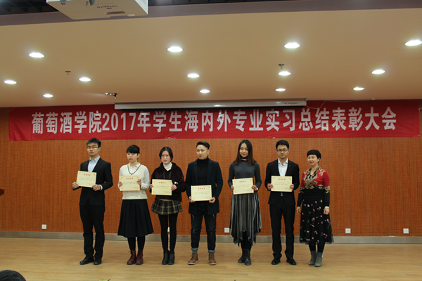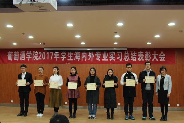 党委副书记邓亚丽宣读《关于表彰2017年葡萄酒工厂生产实习优秀实习生的决定》后,教务处副处长李菊兰、就业指导中心副主任罗建峰、国际合作与交流处副处长于瑛分别为优秀实习生颁发证书;副校长罗军为宁夏张裕摩塞尔十五世酒庄、法国百特酒业集团成为香蕉视频