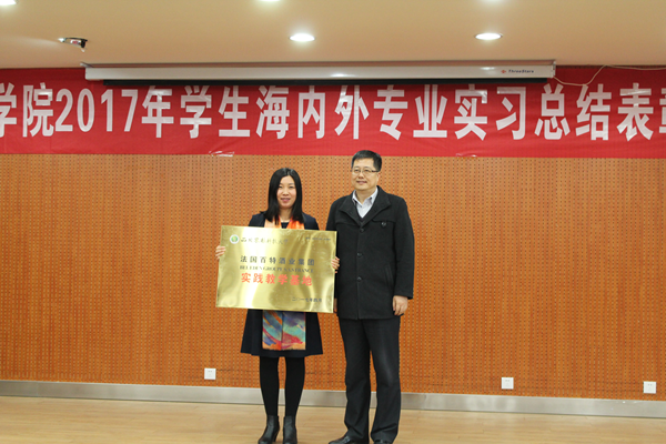 国际合作与交流处副处长于瑛为优秀实习生颁发证书