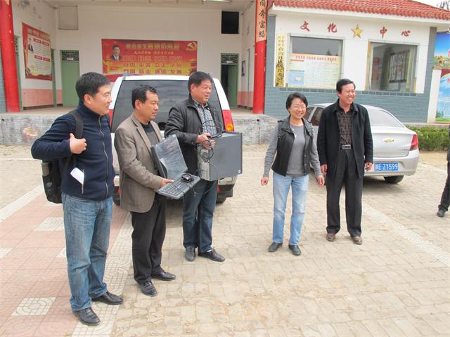 培训会后,王华教授与入户团队的专家、科技人员一起到合阳县新池镇、坊镇及百良等3个镇10个科技入户村考察指导,并赠送计算机。