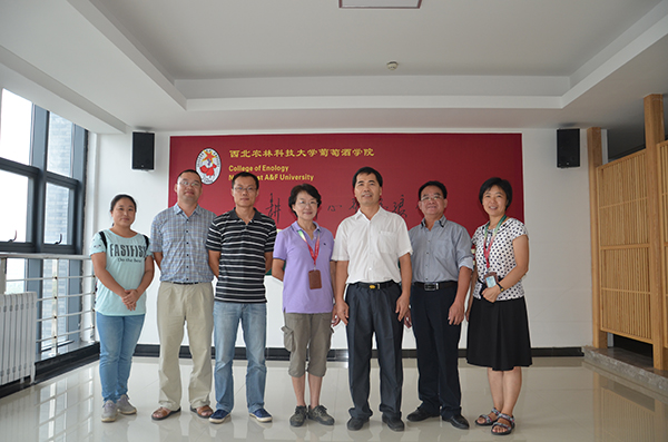 8月9日上午9时,来自广西农业科学院、罗城县仡佬族自治县水果生产管理局、罗成县毛葡萄协会的一行5人的考察团来到香蕉视频 进行考察交流,王华院长带领参观并介绍了学院的科研及教学实验室、葡萄基地及盛唐酒庄,双方就科研平台建设及葡萄栽培引种进行了深入的交流。