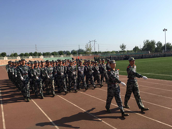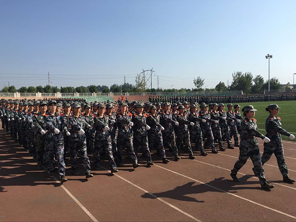 伴着激昂的进行曲,分列式正式开始。我院女生方阵口号响亮,步伐整齐划一,尽显巾帼豪气。男生方队作为最后一支队伍压轴出场,更是刚劲有力,口号声震耳欲聋,一个个精神抖擞、飒爽英姿,凝聚了各位新生14天汗水和努力,向大家展示了14天坚持不懈的军训成果。