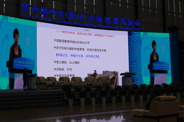 王华院长、胡俊鹏书记应邀参加第六届中国贵州国际酒类博览会暨2016年全球葡萄酒业领袖峰会。中国(贵州)国际酒类博览会以酒为媒,围绕“展示全球佳酿,促进合作交流”主题,为全球的酒业翘楚、学术专家搭建了一个搭建了交流学习,共享理念的新平台。会上,院长王华教授作为葡萄酒界学者代表做了“产业升级让中国从葡萄酒大国转变为葡萄酒强国”的大会报告。王华院长以大量数据,围绕国内葡萄酒产业发展现状、存在问题和国内葡萄酒产业升级的必要性等主要内容进行了大会发言,得到了参加会议的行业人士的高度评价,也接受了葡萄酒行业人士的当面请教和咨询。