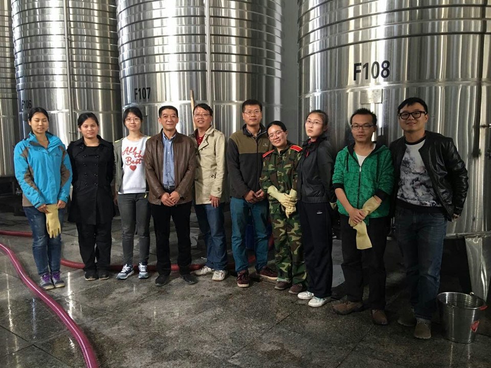 终身名誉院长李华教授、副院长刘树文教授专程赴内蒙古乌海阳光田宇葡萄酒实习基地,亲切慰问正在这里进行实习的学院师生。他们询问同学们的实习情况,与我院校友黄建清、齐东虎、郭亮就阳光田宇酒庄2016年的酿酒状况进行了交流,并和同学们一同品尝了当年的发酵酒,交流了品尝心得。领导们对学生在乌海的实习工作表示肯定,希望同学们明确自己作为乌海产区实习基地的开拓者和先锋的身份定位,谨记“耕土耕心,酿酒酿人”的院训,以一定要把乌海实习基地建设好的坚定信念踏实工作、认真负责地把剩下的实习工作完成好,为加强校企合作,推进香蕉视频