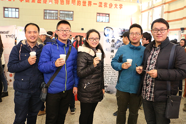团工委书记赵星宇老师亲临会展现场,与其他学院的老师一同品尝了李华葡萄酒,并讨论了我院在创新创业领域的工作情况。赵星宇老师与现场的工作人员亲切地交流,详细地询问了学院特色和科创项目的展示情况,并与现场的工作人员合影留念,对他们的工作表示了支持和鼓励。