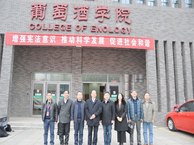 2016年12月21日,国家林业局科技司巡视员厉建祝一行带领专家组对我院王华教授主持的国家林业局林业科技推广项目“优质抗逆葡萄新品种媚丽的示范与推广”进行了现场查定和预验收。专家组首先在胡俊鹏书记和房玉林院长的陪同下参观了学院工艺实验室、地下酒窖和品尝室。然后听取了项目组的汇报,对项目实施情况和取得的成绩给予了充分肯定,并就汇报材料撰写、项目经费使用、配套技术培训和推广等方面进行了详细询问,提出了富有建设性的意见和建议。专家组随后到媚丽葡萄苗木繁育和栽培示范基地进行了现场查定,并查看了媚丽葡萄酒酿造车间。