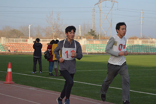 赛期为三天,分别于不同时段进行。比赛伊始,随着发令员的一声枪响,运动健儿们均好似离弦之箭向前奔去。虽是你追我赶,分毫不让,却并无故意推搡等不文明现象发生。赛程过半,不少选手已显疲态,然而他们仍尽自己最大的努力咬牙坚持。在最后冲刺阶段,无论呼吸多么沉重、小腿多么酸胀,每一位参赛选手都尽情释放他们的力量与激情,永不言弃,冲向终点。已然料峭的寒风中,现场气氛异常热烈。看台观战的同学们的目光紧紧追随着场上奋力奔跑的同班、同院系的同学,不住地呐喊助威,恨不能肋生双翅飞至选手身旁,陪伴他们完成整个赛程。更有水利与建筑工程等学院的同学自发鸣锣敲鼓,为选手加油打气,极大地鼓舞了士气。