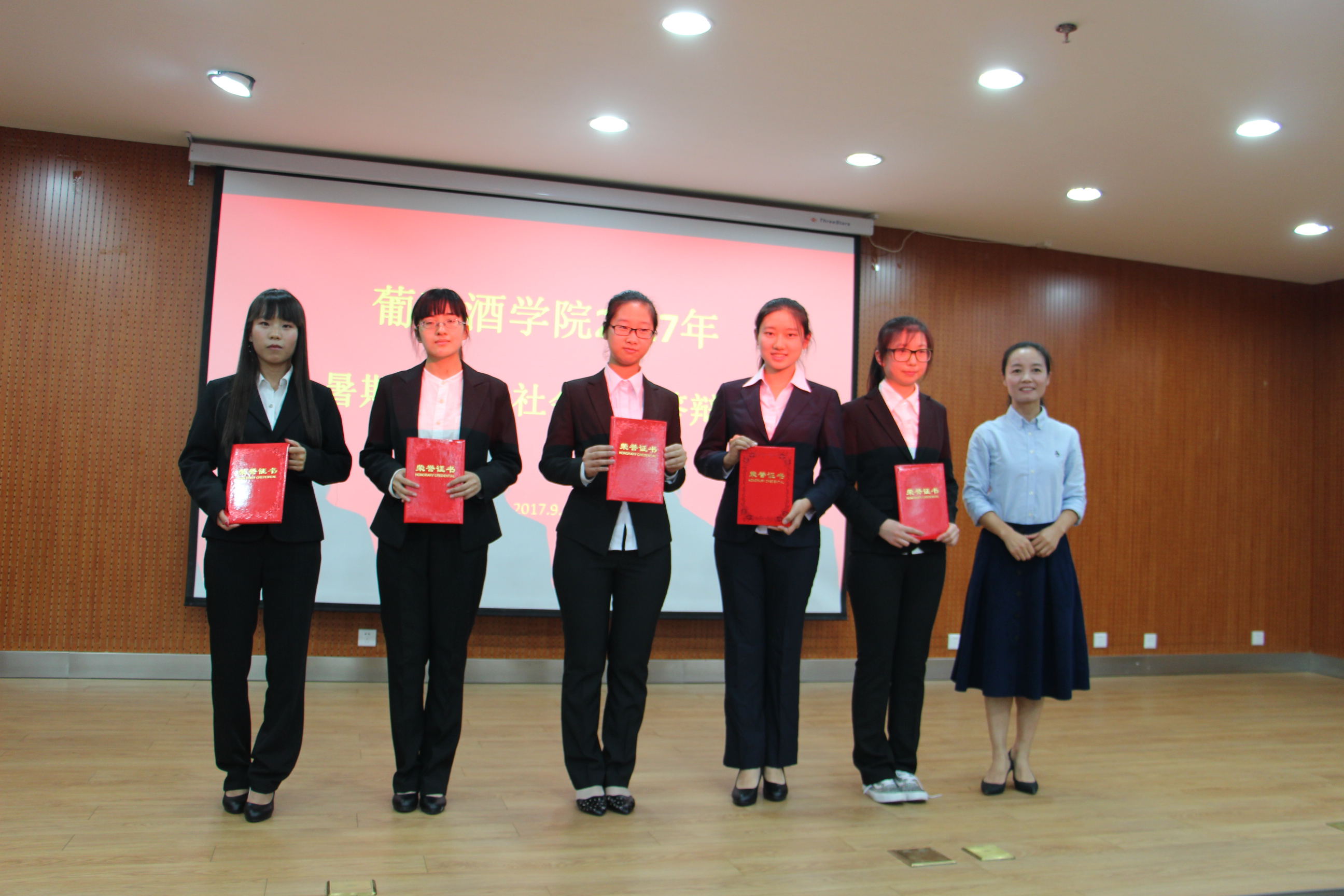暑期"三下乡"优秀秀团队。邓亚丽副书记为获奖团队颁发荣誉证书。