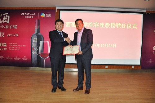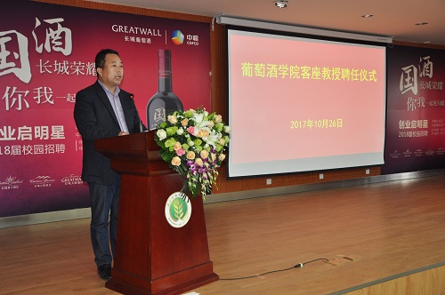 10月26日,我院在6层报告厅举行客座教授聘任仪式。学院党委书记胡俊鹏主持会议,出席的嘉宾有中粮酒业副总经理兼长城葡酒事业部总经理李士祎、长城事业部副总经理盛国红、长城事业部总经理助理刘鑫、长城事业部华夏工厂常务副总经理杨雪峰等,学院师生代表300余人参加会议。