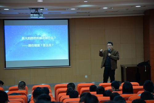 承办的就业大学堂在北绣山北报告厅开讲。我院97级优秀校友、金恪投资控股集团农业事业部运营总经理任斌先生为同学们带来了“职业生涯 从心开始---找到心中那片湛蓝的星空”专场报告。报告会由学院党委副书记邓亚丽主持,包括我院学生在内的全校200余学生聆听了报告会。