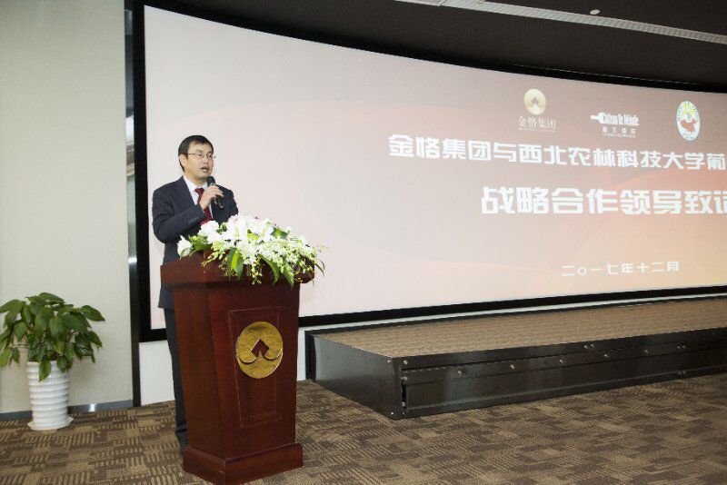 的基本情况、专业优势及“丝绸之路农业教育科技创新联盟”等我校发展战略。他表示,“后起之秀”金恪集团以产融结合模式引领新业态,把自身独特全球产业资源整合、市场运营能力与世界公认的新疆天山南麓优质葡萄酒产区资源相结合,全力打造金恪农业旗下罄玉酒庄,此举既是我国葡萄酒产业升级践行者,也是我国建设丝绸之路农业教育科技创新联盟的推动者和引领者。金恪集团有强项,学院有优势,只要双方优势互补、资源共享,完全可以实现1+1>2的合作效应。同时,强调双方重视并实施战略合作协议,需要创新合作新机制,在深度合作机制中产生更多有价值、有示范效应、有国际认可度的新标准、新产品、新技术、新品牌,才能共酿满足新时代美好生活的中国风格的葡萄酒,为提升新疆乃至我国葡萄酒质量水平和国际产品竞争力而砥砺奋进。