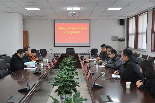 2017年12月11日上午,绍兴文理学院生命科学学院潘伟槐书记一行4人来院考察交流。学院党委书记胡俊鹏及办公室工作人员陪同参观,实验室主任梁艳英详细介绍了本科教学实验室建设情况。