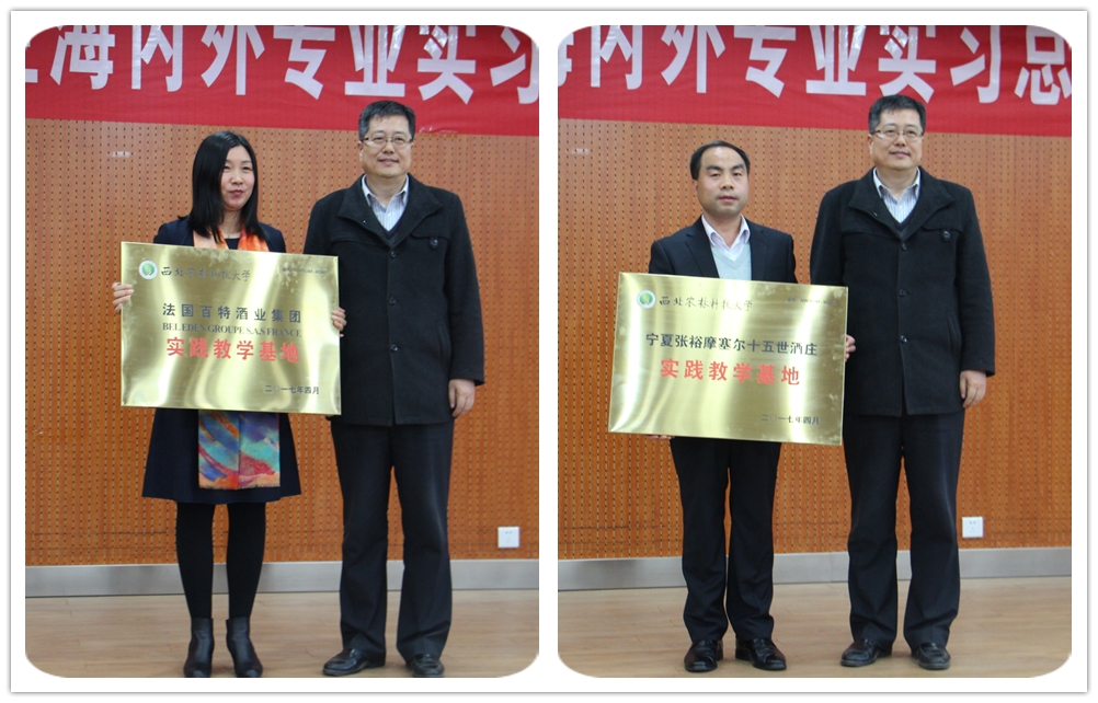 实习单位代表宁夏张裕摩塞尔十五世酒庄阮仕立总经理和法国百特酒业集团公司孙春梅副总经理介绍了教学实践合作的相关情况,对实习学生吃苦、肯干的工作态度和扎实的专业基本功给予了高度肯定。