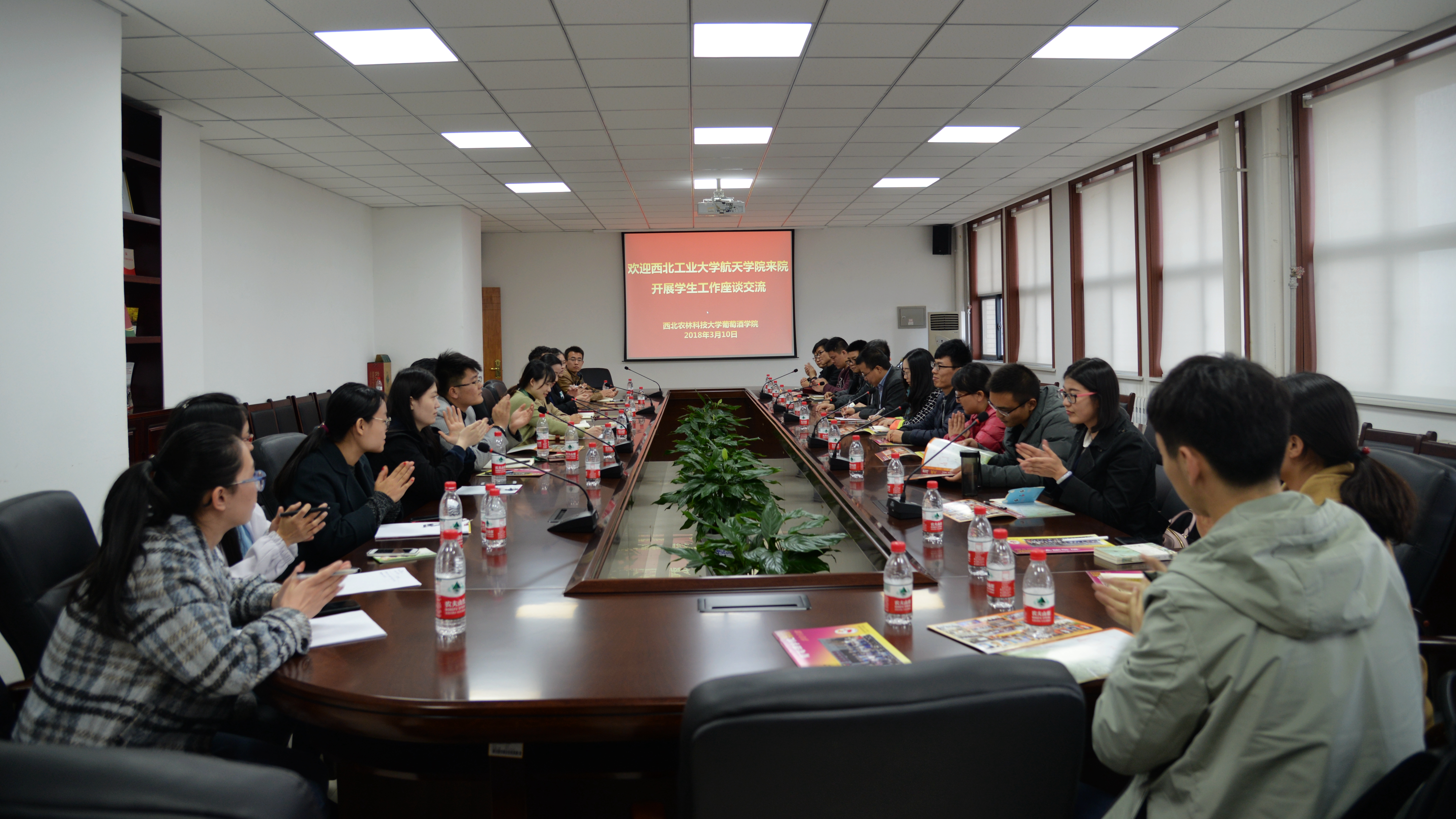 美酒作纽带,两院传友谊。3月10日,西北工业大学航天学院党委副书记张永福、团委书记赵通科、研究生辅导员罗淑娟和研究生会骨干一行15人,来到香蕉视频