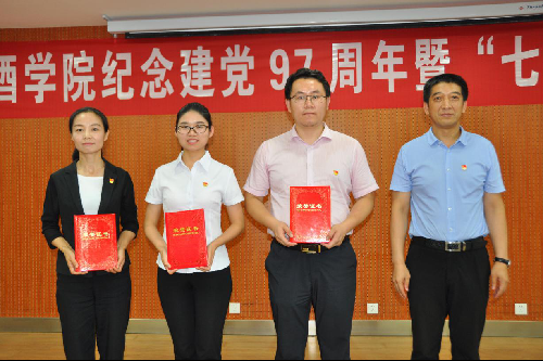 学院院长、党委副书记房玉林同志宣读了学院表彰文件。张振文等11位同志荣获“优秀共产党员”称号、邓亚丽等3位同志荣获“优秀党务工作者”称号、葡萄酒学党支部等2个支部荣获“先进党支部”称号,学院党委委员为先进集体和个人颁发了获奖证书。