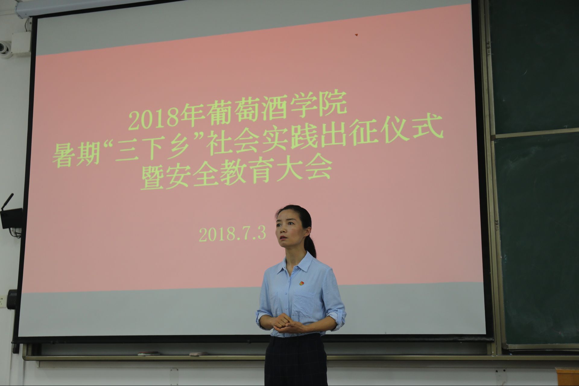 党委副书记邓亚丽老师贴心地为各队伍发放了医疗包后,对暑期社会实践工作提出四点要求,一是全面认识社会实践的重要意义。社会实践是了解社会、认识社会的重要途径,是专业学习和实践教育的重要组成部分,作为对实践能力有较高要求的葡萄与葡萄酒工程专业的学生,应抓住一切机会积极投身实践锻炼,通过实践了解社会、认识专业、成长自我。二是做足行前“功课”,提高实践项目执行能力。每支队伍在出发前结合各自实践目的和要求,按照“科学谋划、目标管理、信息在线、过程控制”的原则,细致做好资料查阅、人员分工、路线攻略、经费预算等工作,确保学校、学院支持项目经费的合理开支和实践育人目标的全面实现。三是展示个人良好素养,做密切学院和校友关系的使者。实践活动一如既往得到了行业企业和广大校友的鼎力支持,每一位实践成员都是香蕉视频
