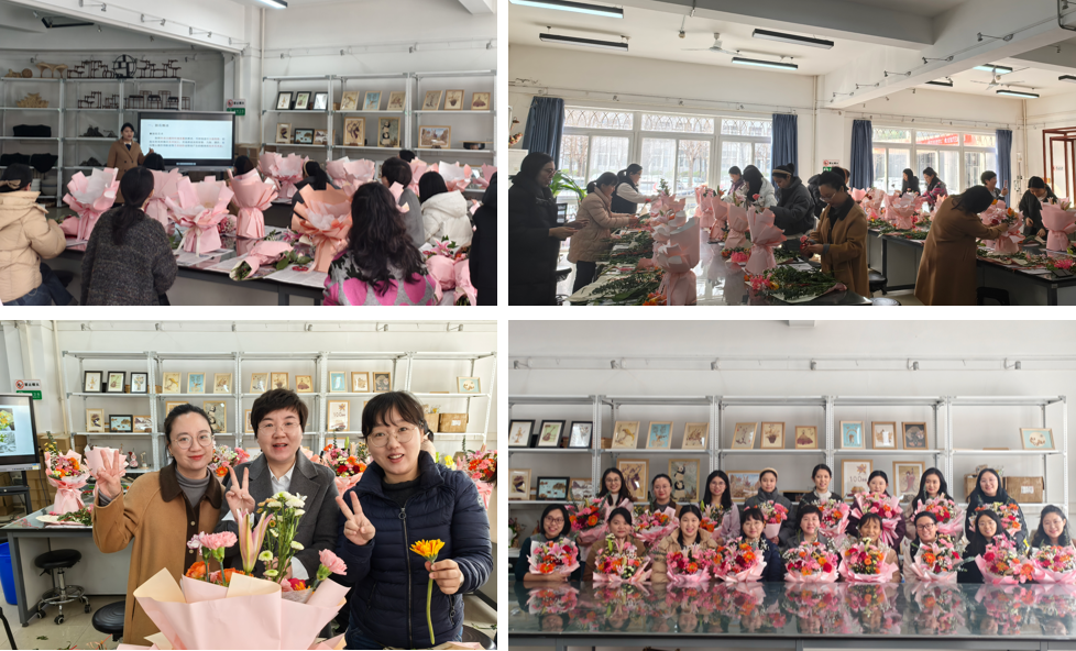 花香四溢,巧手生春:插花活动陶冶情操。上午,学院工会举办了“花香四溢,巧手生春”主题插花体验活动,邀请风景园林艺术学院副教授史倩倩进行授课指导,共赴春日花事。史老师从花材选择、色彩搭配、插花技巧等方面进行了详细讲解,并现场演示了多种插花造型。女教职工们充分发挥想象力和创造力,将一朵朵鲜花精心搭配,创作出一束束独具匠心的插花作品。活动现场花香四溢,欢声笑语不断,大家沉浸在创作的乐趣中,感受着春天的气息和节日的喜悦。