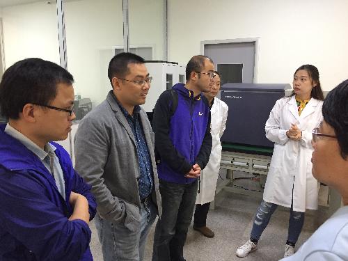论坛活动结束后,刘旭副院长陪同两位学者考察了学校生命科学大型仪器共享平台,平台的负责人员详细为大家介绍了相关仪器设备的功能及研究领域,两位学者对该平台的设备情况给予了高度评价。