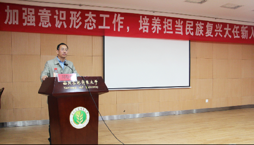 闫祖书结合习近平总书记在全国教育大会上的讲话,提出教师要敬畏讲台,做好“铸魂”“育人”的工作。他还从学校发展背景、发展历史和对国家、社会的贡献,以老中青科学家的爱国奋斗精神,对学校优秀文化和“西农精神”进行了系统的讲解和阐述。他希望老师们能用身边的文化影响学生,用我西农精神激励学生,共同为学校“双一流”建设凝聚思想共识,提供精神动力。