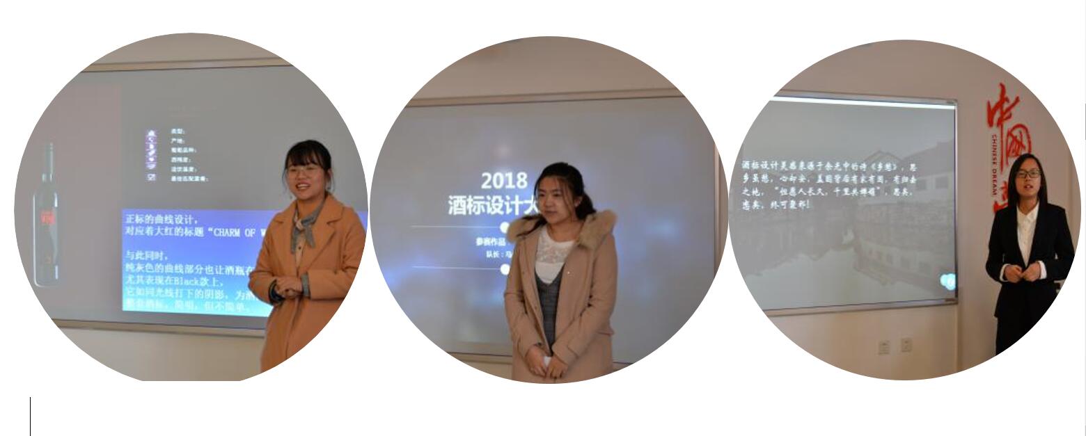 本次参赛的酒标作品设计各异,精彩纷呈。各组参赛选手精心准备、大胆展示,从中华传统文化、西农文化、简约主义、四季变化及环境保护等多个主题出发,设计出《蝶生》等30套酒标,并利用幻灯片从作品的创作灵感、设计理念、价值用途等多方面内容进行了详细的讲解。评委老师就酒标的实用性、原创性、创作细节等方面与参赛选手进行了交流,并提出了指导性的建议,使选手及现场观众对酒标的规范性和美观性有了更加深刻的认识和理解。