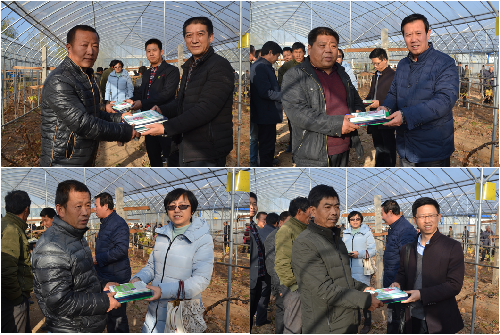 院长助理秦义副教授、园艺学院何玲副教授以及示范站张鹏等代表示范站为科技示范户赠《葡萄优质安全栽培技术》等书籍4套。