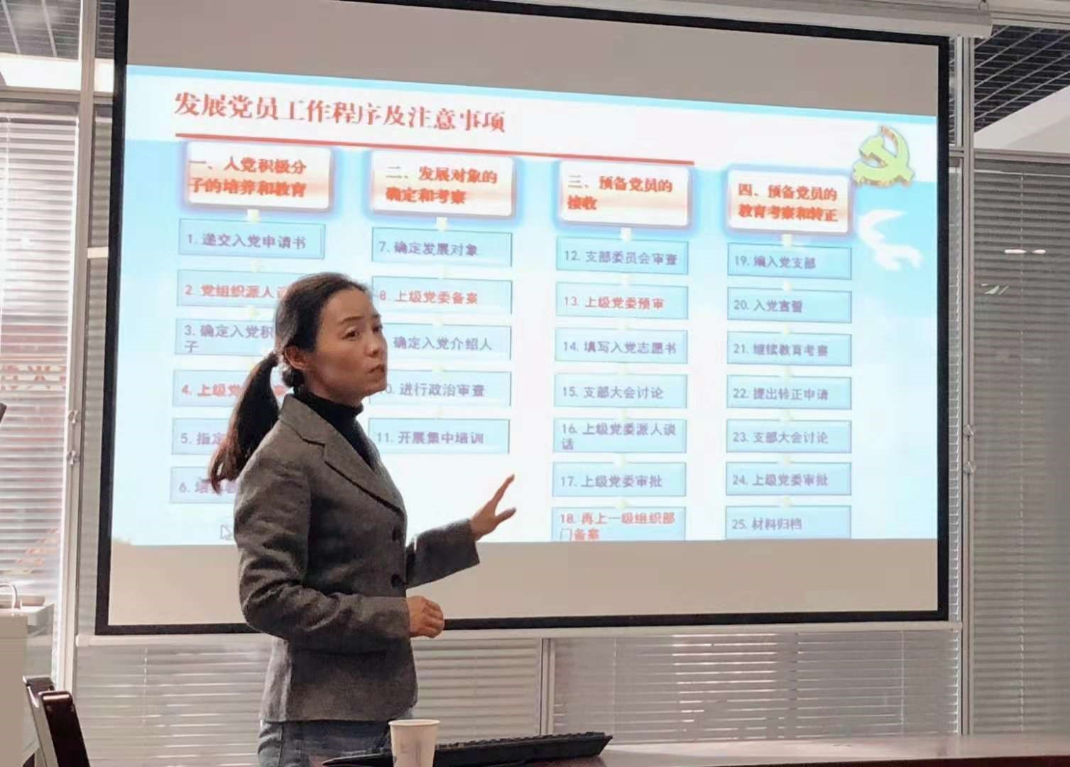 本次党课以“党员发展工作务实”为主题,从入党积极分子的确定和培养教育、发展对象的确定和考察、预备党员接受和预备党员教育考察和转正四个方面开展,详细解读了《陕西省发展党员工作规程(试行)》。