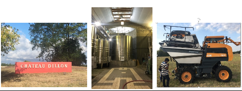 9月17日-10月12日我俩被分配到位于Haut-Médoc地区的酒庄Château Dillon,参与榨季酿造实习。一起实习的还有分别来自美国,法国和印度的三个同学。Château Dillon葡萄园面积有40公顷,大部分机器采收,平均树龄约25年,土壤以砂质土和粘土为主、少量砾石,年产酒量约220000瓶,其正牌酒每年都在中级庄名单榜上有名。酒庄酿造实习包括波尔多红白混酿,桃红和香槟法酿造的Crémant Rosé四种酒。实习期间,我们还有幸参与到了著名列级庄龙船酒庄Château Beychevelle的葡萄采样分析。Château Beychevelle的葡萄园管理可谓精致,机器修剪的整齐葡萄树,砂质土上分布均匀的砾石,几乎没有杂草。90公顷的葡萄园由数十名葡萄栽培学教授划分为两百多个区块,每个区块挑选特定株葡萄树采样分析。