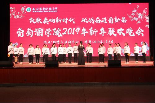 新年联欢晚会在学院十佳歌手带来的《骄傲的少年》中拉开帷幕。《读中国》、《祖国啊,我亲爱的祖国》、《走进新时代》等节目歌颂祖国改革开放40年的伟大成就,让全体师生深切感受祖国的繁荣昌盛,对中华民族的伟大复兴充满期望。《我们俩》、《天山之春》、《耕土耕心,酿酒酿人》等节目展示葡酒学子的青春芳华,弘扬西农精神,践行院训理念,紧密联系校园生活,发掘榜样力量,呈现了葡酒学子蓬勃进取,追求卓越的优良风貌。