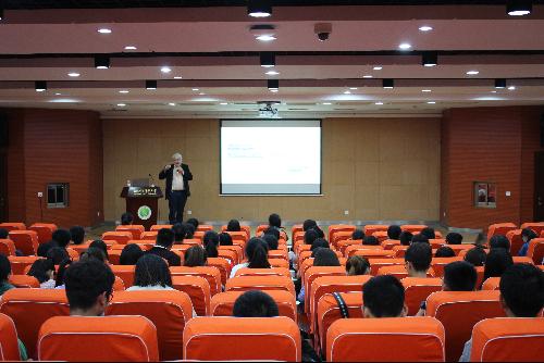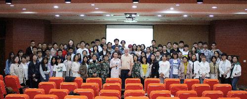 在此次讲座中,大师幽默诙谐的语言风格使现场氛围活跃异常,大家踊跃与大师进行互动交流,提出问题,大师也认真的给出自己的答案。最后,在座学生全体与大师进行了合照留念。